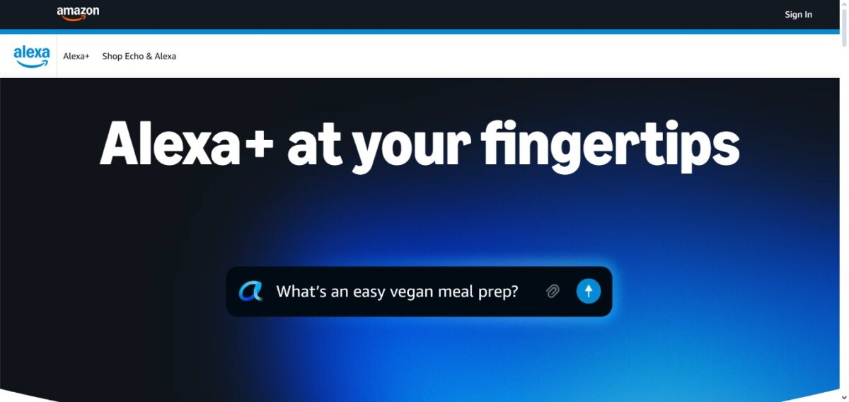A partir de ahora, los usuarios pueden acceder a Alexa+ directamente a través de alexa.com y encontrar la misma experiencia que se ofrece en las aplicaciones de Android e iOS. La interfaz web presenta una barra de búsqueda similar a la de competidores como ChatGPT y Google Gemini, así como submenús dedicados para «Planificar», «Aprender», «Crear», «Comprar» y «Buscar», cada uno con sugerencias de comandos personalizados para facilitar la interacción de los usuarios con la plataforma.