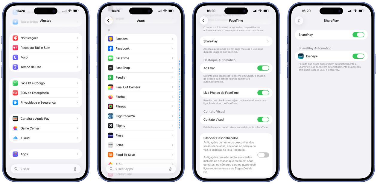 Abra Configuración (Ajustes) y toque «Aplicaciones». Seleccione «FaceTime» y «SharePlay» para elegir las aplicaciones justo debajo de la sección «SharePlay automático».