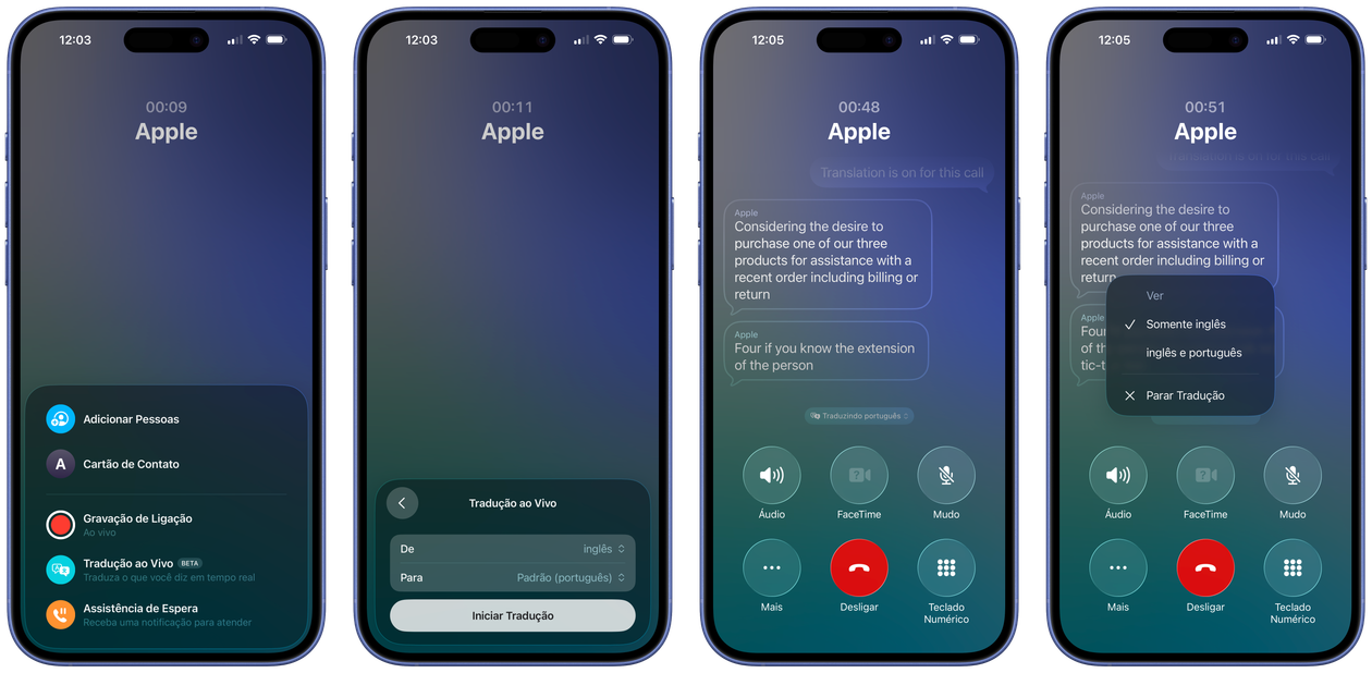 Abra la aplicación Teléfono en su iPhone, iPad o Mac y realice una llamada normalmente. Durante la llamada, toque/haga clic en los tres puntos y en «Traducción en vivo». Elige tu idioma y lo que quieres traducir.