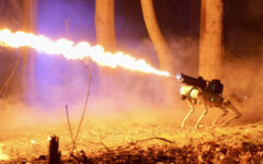 Pero la verdadera funcionalidad del perro robot ha sido ampliamente cuestionada. La empresa afirma que otras aplicaciones incluyen “control agrícola”, “conservación ecológica”, “eliminación de nieve y hielo” e incluso “entretenimiento y efectos especiales”. Tiene un alcance de hasta 9 metros con sus llamas y funciona con gasolina o napalm.
