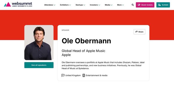 El director global de Apple Music, Ole Obermannparticipará en la próxima edición del evento anual Cumbre webprevisto para el 10 y 13 de noviembre en Lisboa (Portugal).
