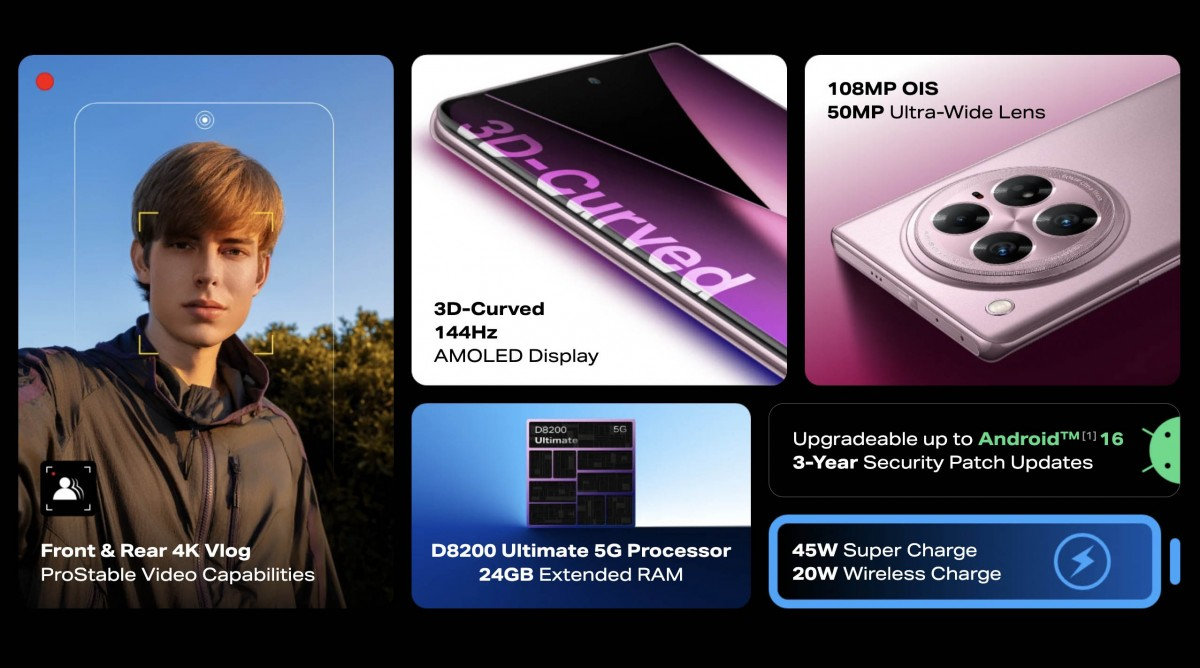 Ambos modelos de la serie Infinix Zero 40 comparten características comunes, como pantallas AMOLED curvas de 6,74 pulgadas con resolución Full HD+ y brillo máximo de 1.300 nits. La protección Gorilla Glass 5 garantiza durabilidad contra rayones e impactos ligeros.