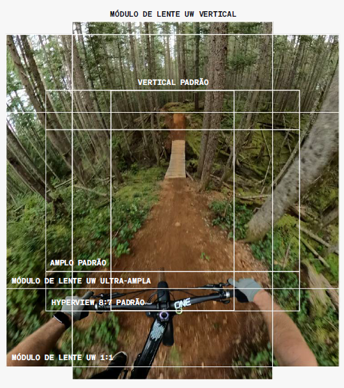 La lente Ultra Wide se recomienda para escenas de acción en movimiento con paisajes, como en una bicicleta de montaña por ejemplo, con la cámara fija en el usuario o en la bicicleta capturando la parte delantera.