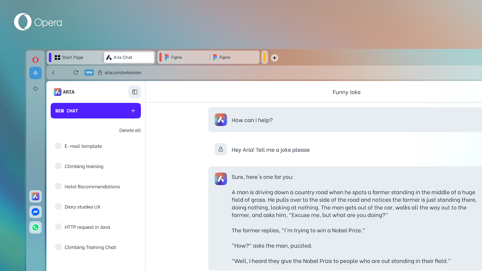 Y hablando de Aria, ahora es posible convertir las conversaciones con ChatBot en pestañas del navegador, facilitando la navegación si mantiene múltiples conversaciones con la herramienta. Esta opción también le permite dejar la conversación con IA abierta en una ventana mientras navega por otra, por ejemplo.