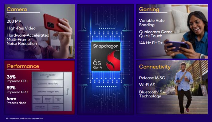 | Característica | Snapdragon 6s Generación 4 | Snapdragon 6s Generación 3 |