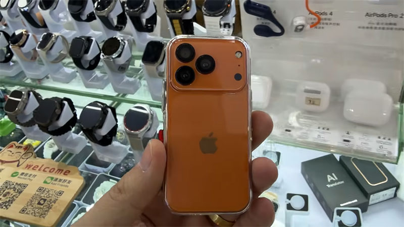 Las tiendas están separadas por tipo de producto. En una tienda que se enfocaba en accesorios tecnológicos como pulseras, audífonos, anillos, encontré una réplica de un iPhone 17 Pro Max, pero en miniatura.