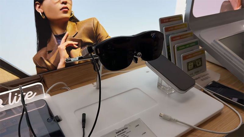 En otra tienda encontré las gafas originales de Rokidel Rokid AR Liteunas gafas de realidad aumentada que están disponibles para conectarse a dispositivos, ya sea celular, tableta o consola. Con esto es posible ver películas y series en realidad aumentada.